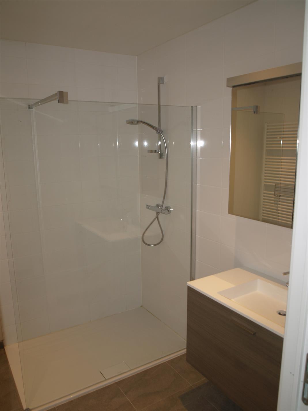 Het woongeheel bestaat uit een inkomhal met apart gastentoilet, een ruime woonkamer, een open keuken (voorzien van alle toestellen), een badkamer met inloop douche, 1 slaapkamers+ dressing/bureel en een berging.