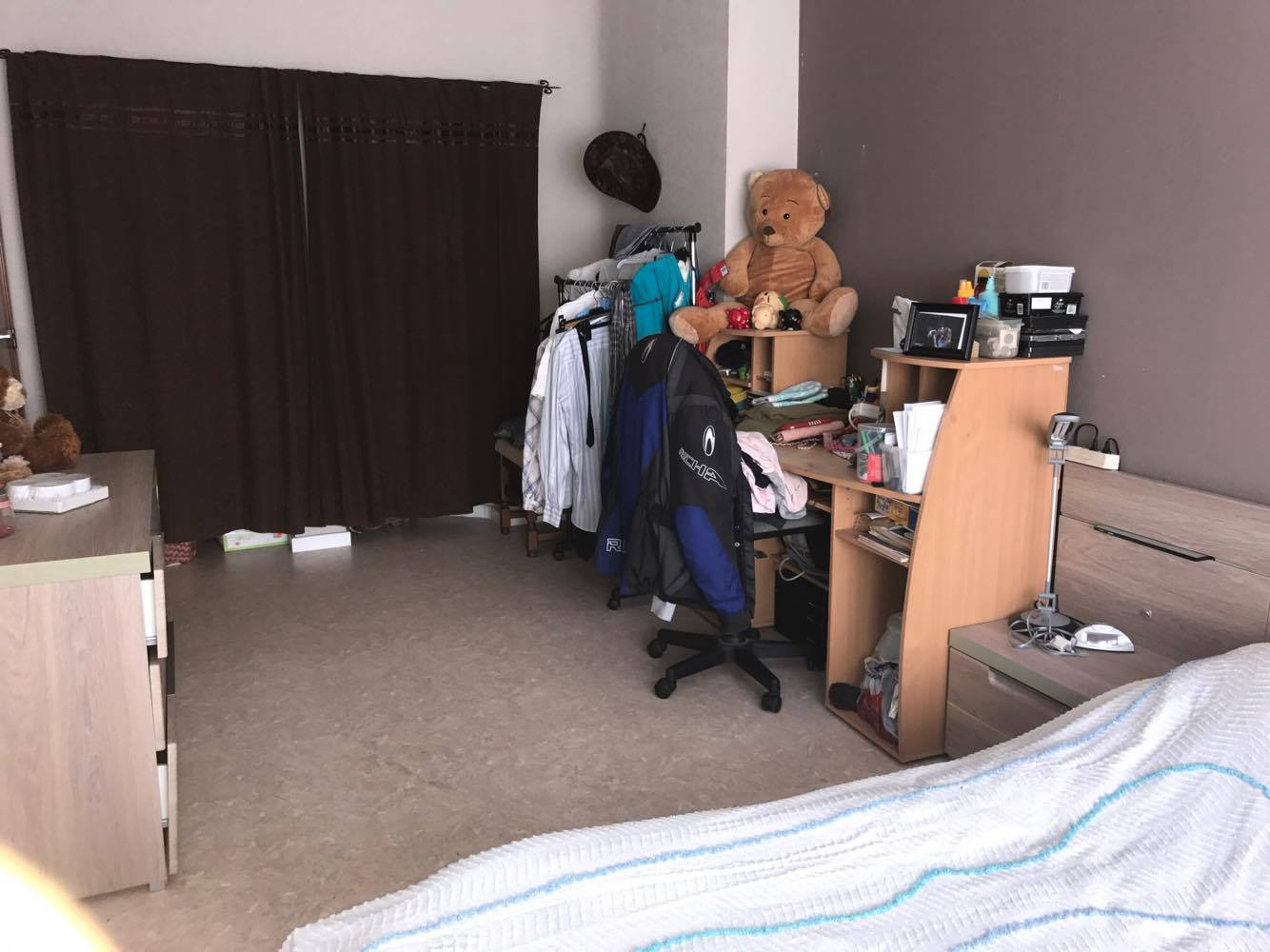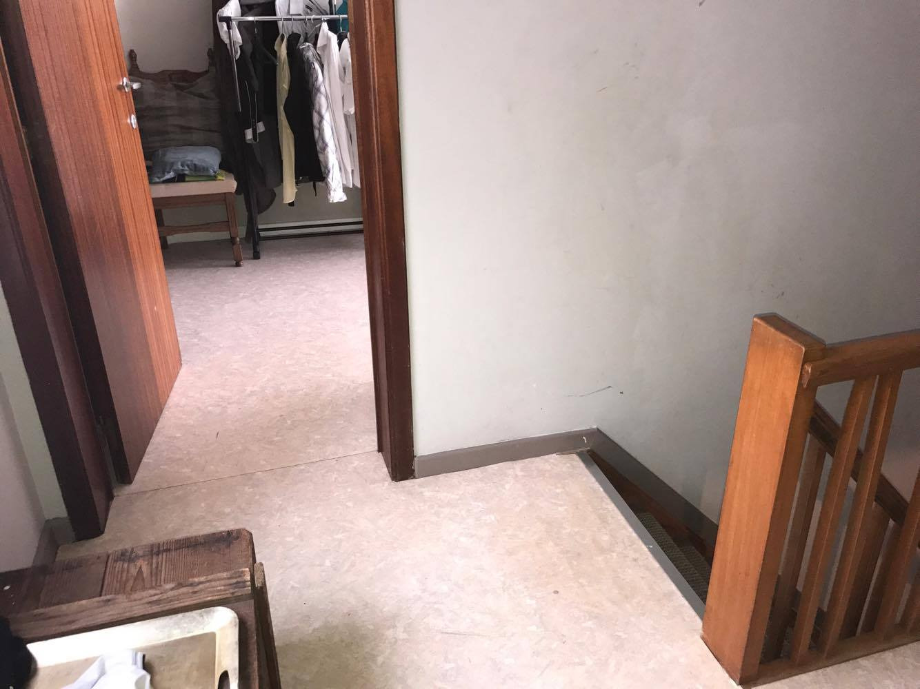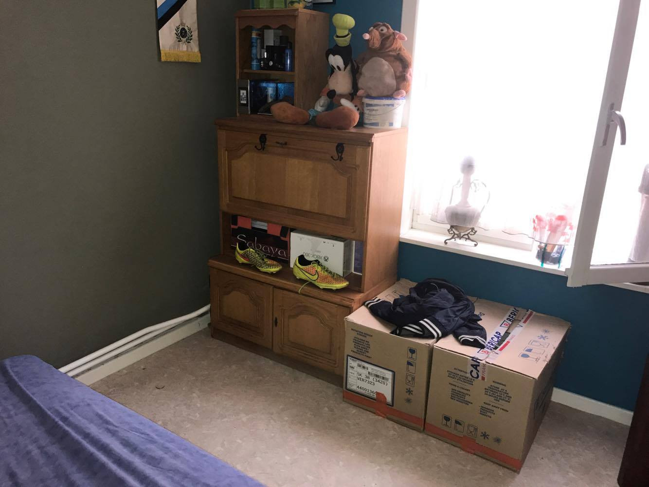 op de verdieping heb je twee slaapkamers, 1 met opbergruimte in de muur en 1 kamer met een achterkamer.