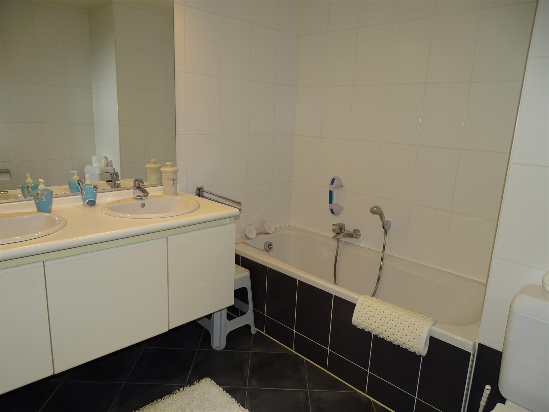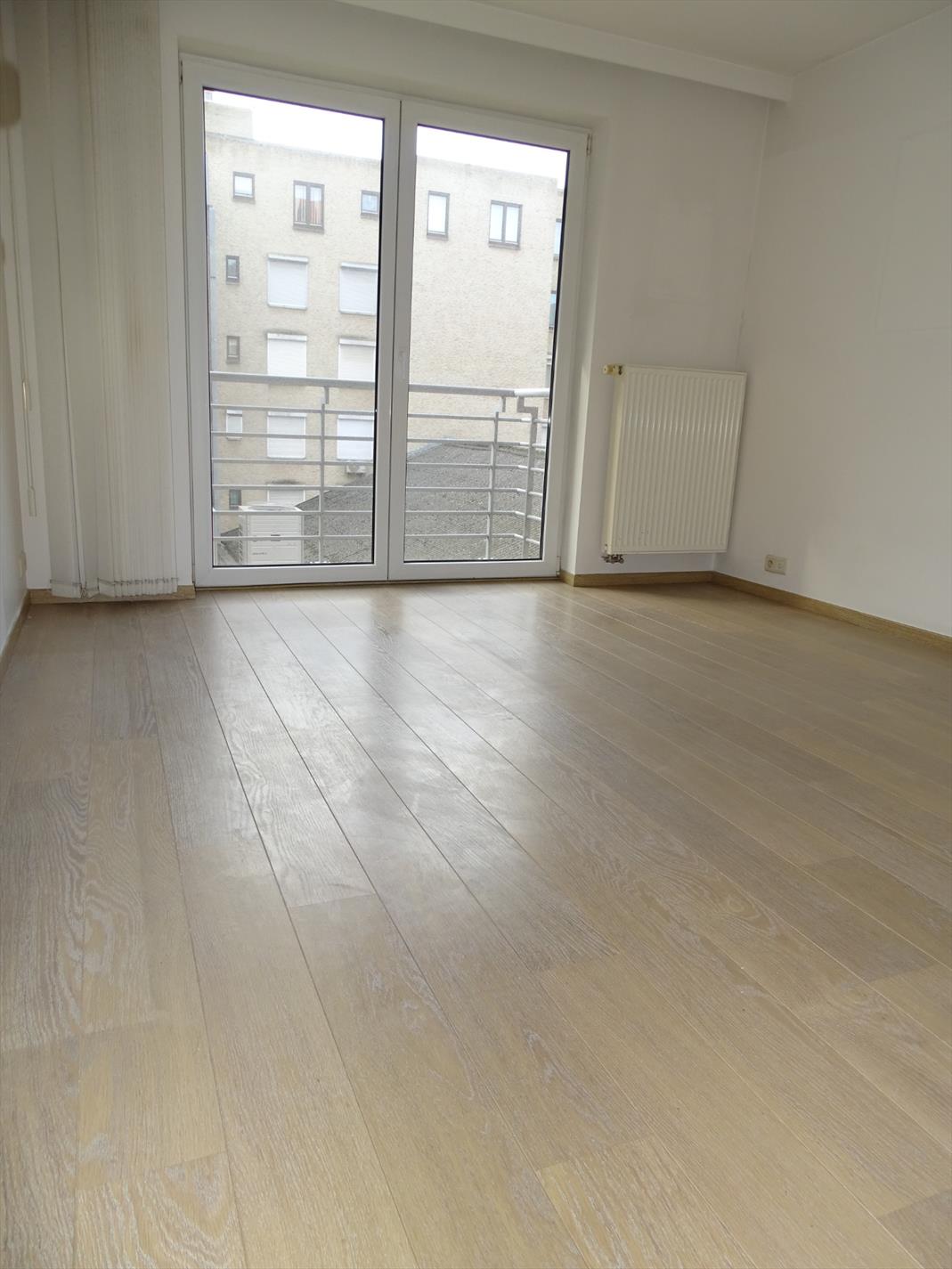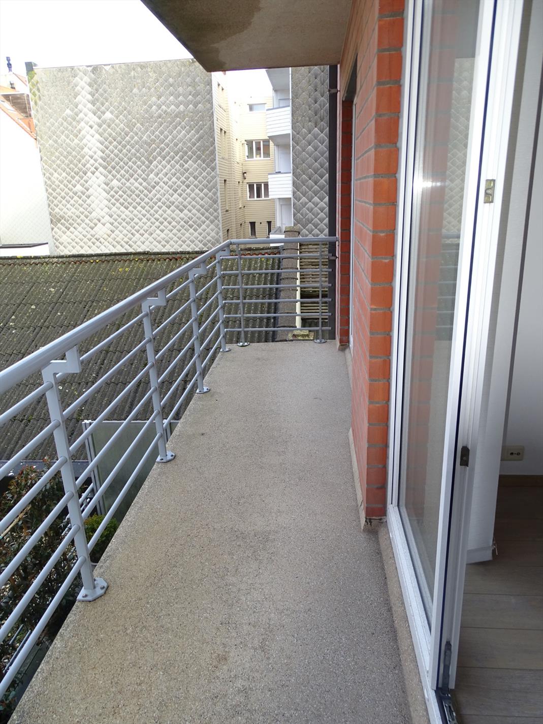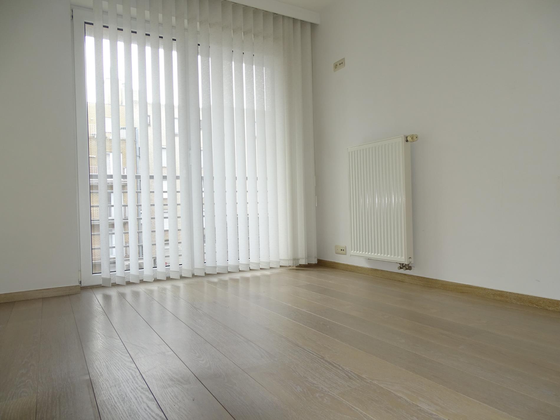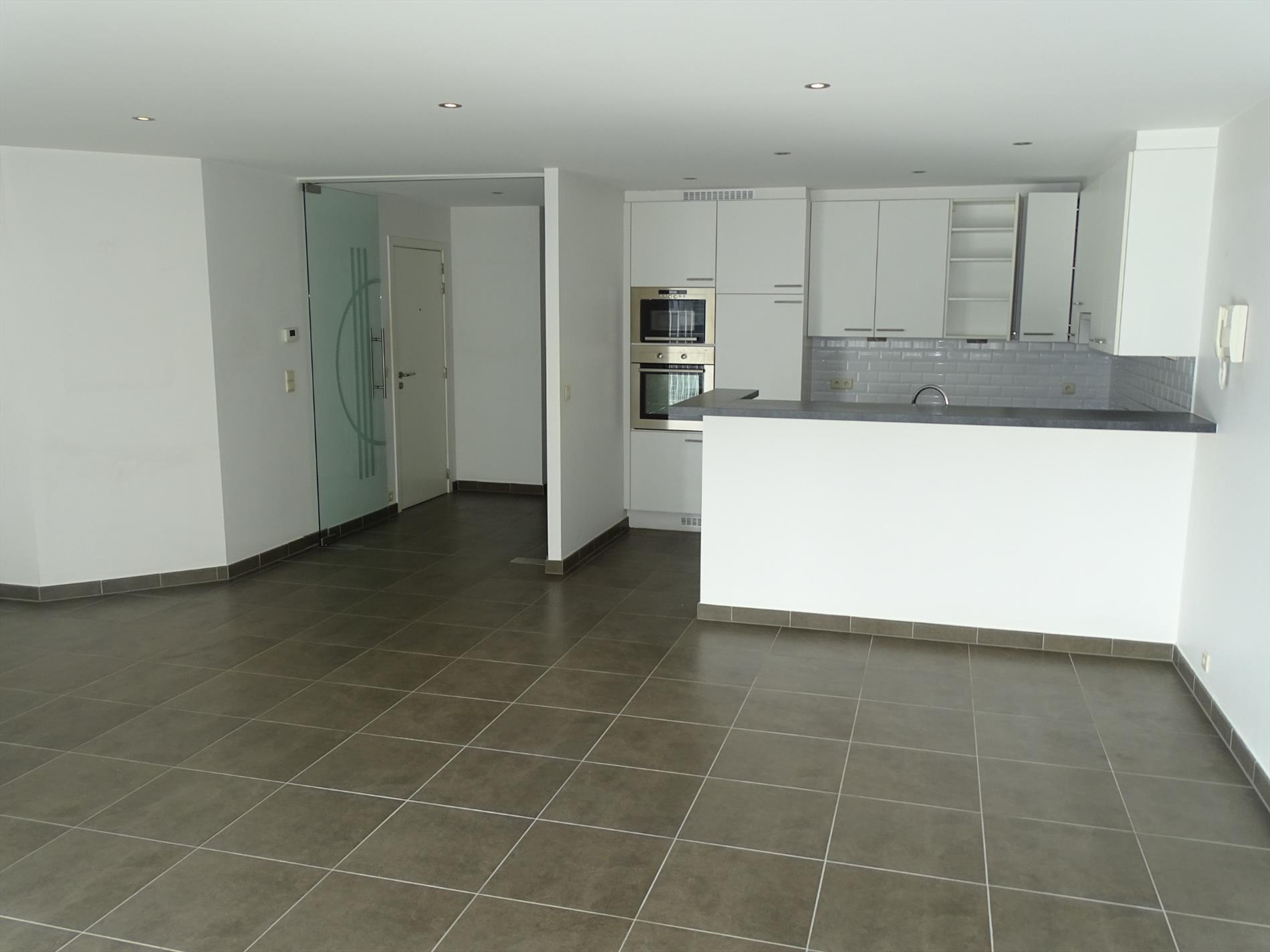 Dit ruime appartement op de tweede verdieping beschikt over een woonkamer met zicht over het Burg. Frans Desmidtplein en de Lippenslaan. De open keuken is volledig ingericht en bevindt zich achteraan de woonkamer. Verder kan men gebruik maken van de ruime berging en de twee slaapkamers achteraan, één met bad, en de ander met douchekamer. Balkon voor- en achteraan. In het gebouw bevindt zich ook een fietsenberging en een kelder, €75 per maand extra voor de gemeenschappelijke kosten.