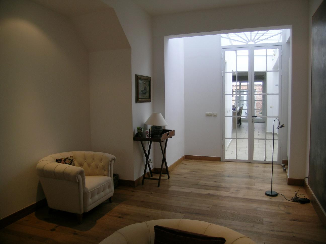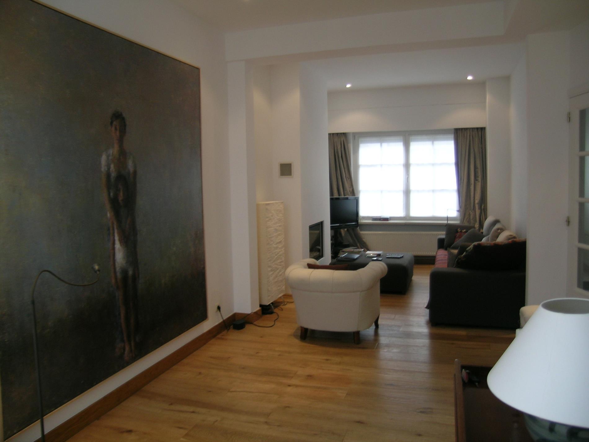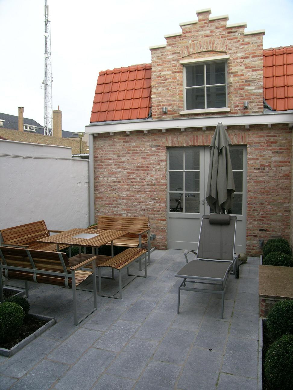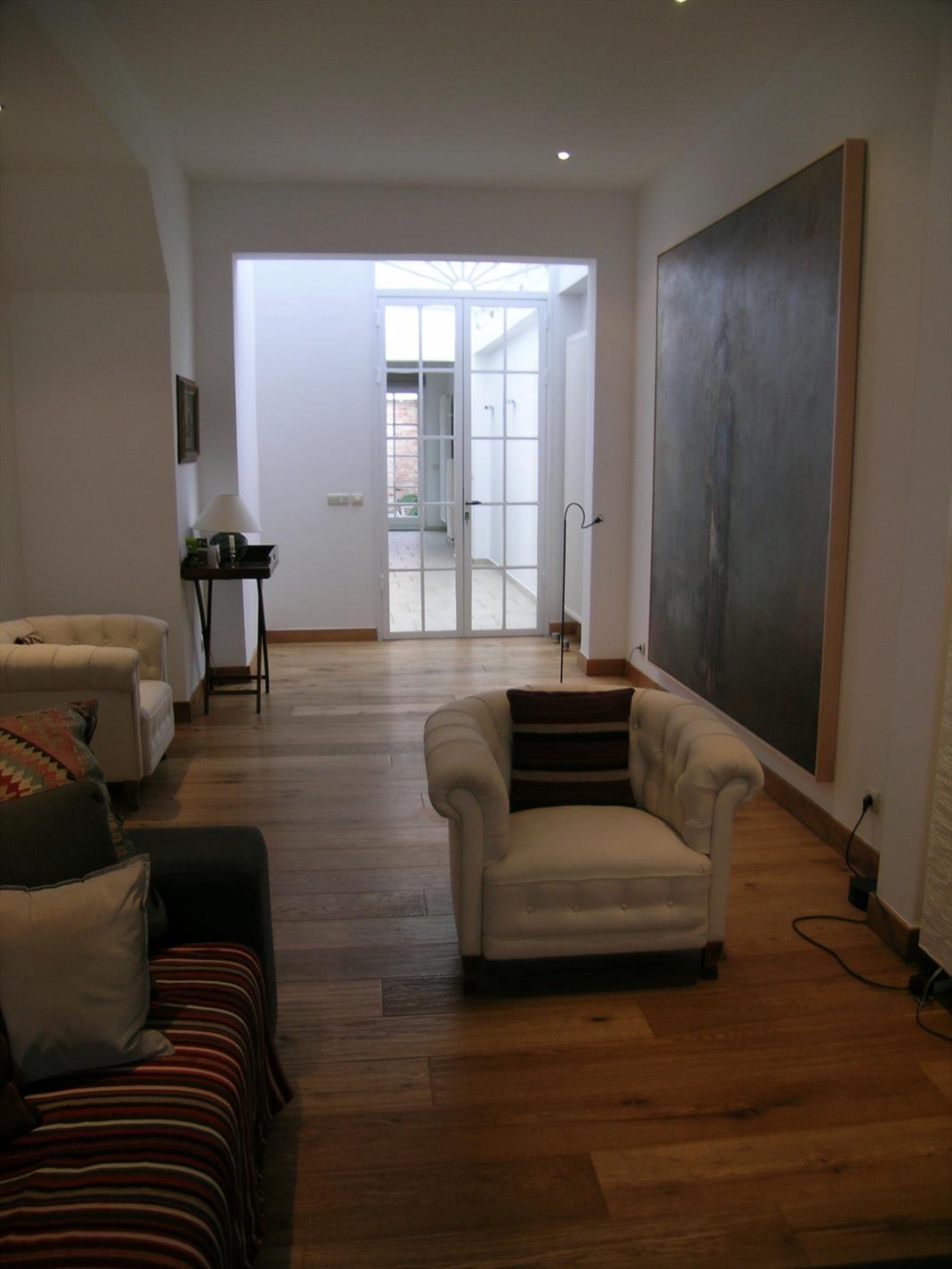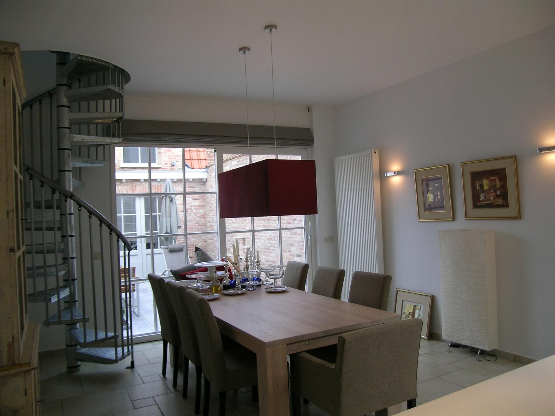 Compleet vernieuwde rijwoning in het hartje van Knokke-dorp met een mooie woonkamer met zithoek en gezellige open haard, open keuken volledig ingericht met kookeiland en eetplaats, 5 slaapkamers, 2 badkamers met bad en douche, ruim terras met nog een extra berging en een fietsenberging. Volledig modern bemeubeld . Garage in de straat mogelijk bij te huren voor €95