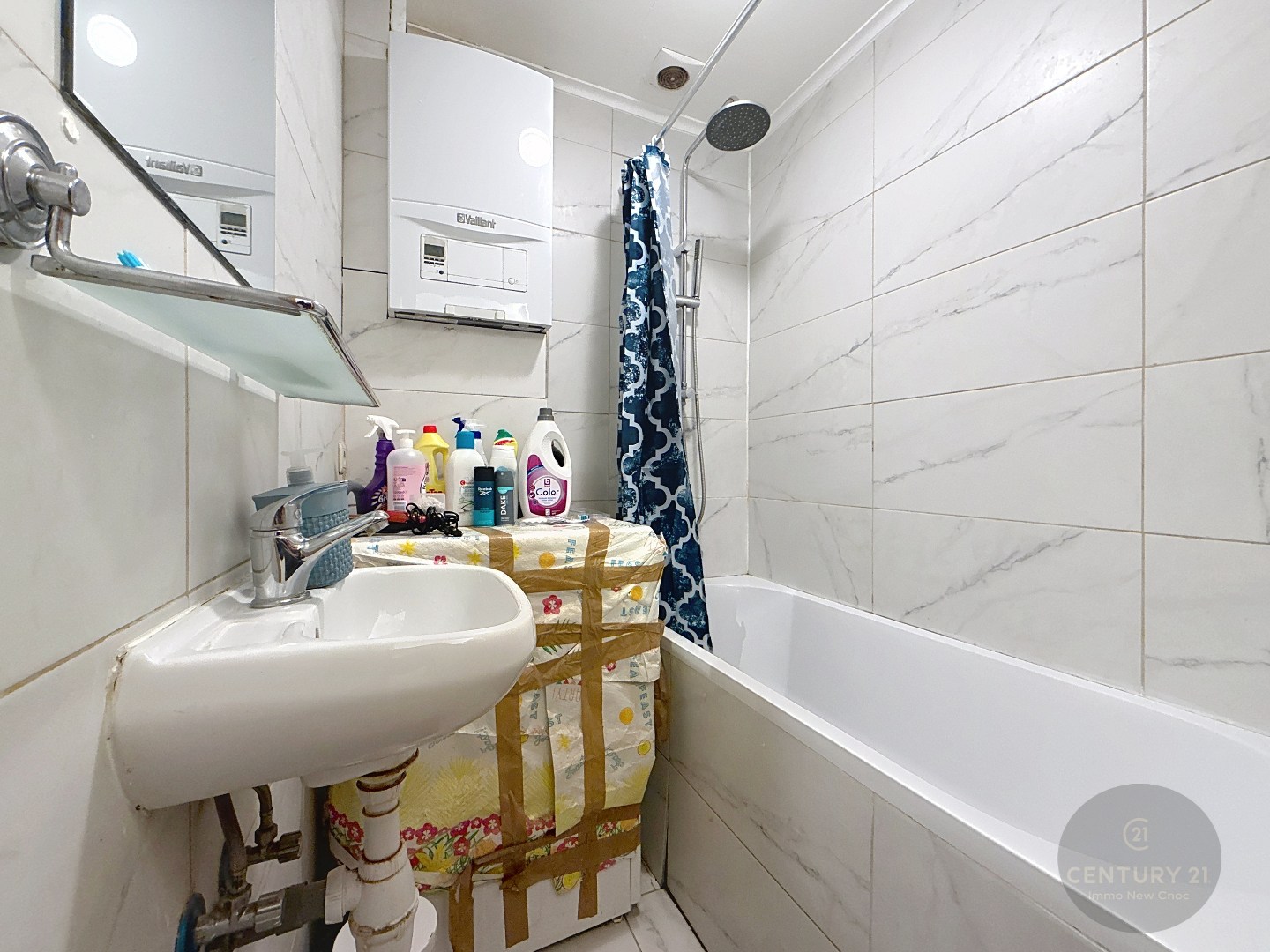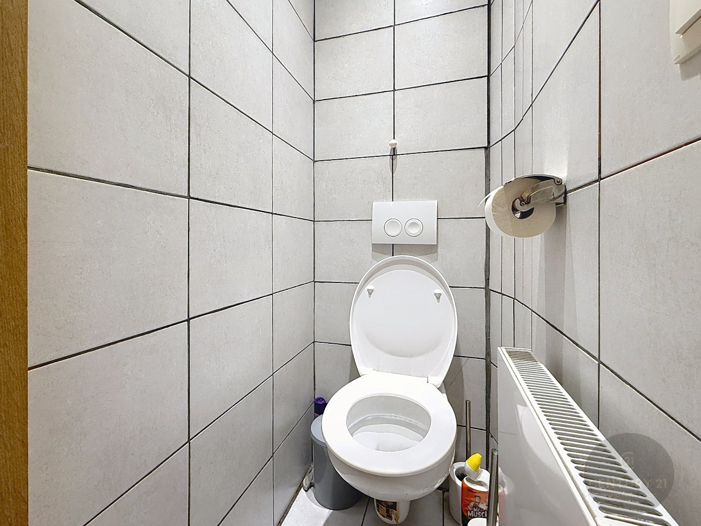 Het appartement is als volgt ingedeeld: Inkomhal, toilet, woonkamer met halfopen ingerichte keuken, een kleine buitenberging, 2 slaapkamers, een badkamer met ligbad.
