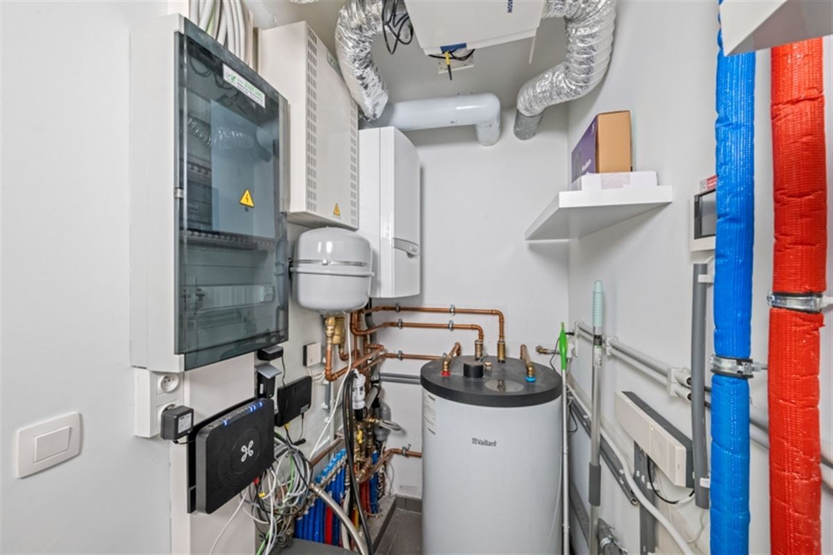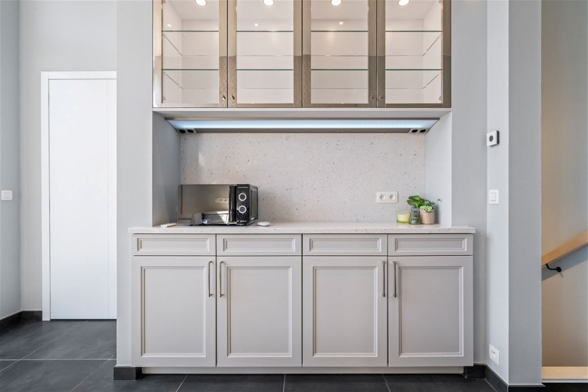 Via de elegante inkomhal komt u binnen in de ruime, lichtrijke leefruimte met open keuken. Deze keuken is een waar paradijs voor de hobbykok, uitgerust met toestellen van topmerken zoals Boretti, Liebherr, Miele en Quooker. Twee aansluitende terrassen zorgen voor een oase van rust midden in het bruisende stadscentrum.
