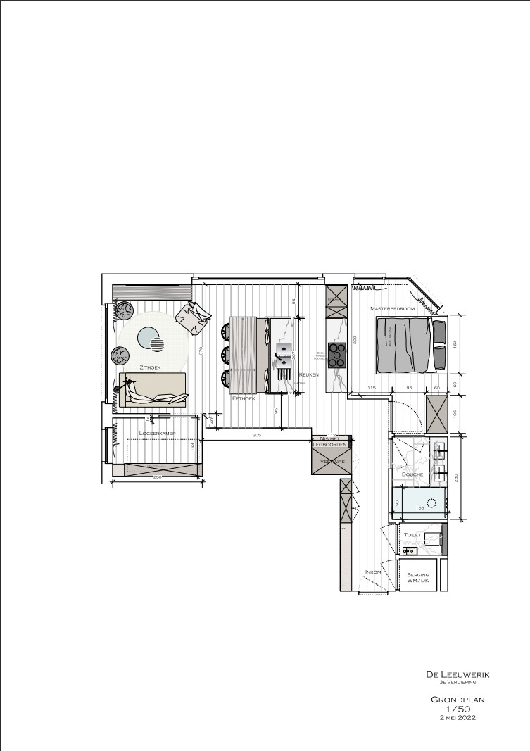 indeling als volgt: Inkomhal met vestiaire en gastentoilet, een wasplaats, een lichtrijke woonkamer met open ingerichte moderne keuken, 2 slaapkamers (master -bedroom en logeerkamer), een mooie douchekamer. MEUBILAIR INBEGREPEN!!