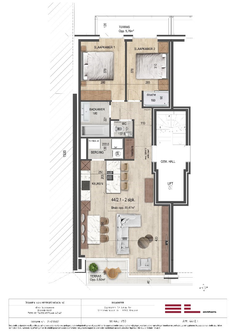 oog voor schoonheid maar ook met aandacht voor comfort. Elk appartement telt 2 of 3 slaapkamers en voldoet