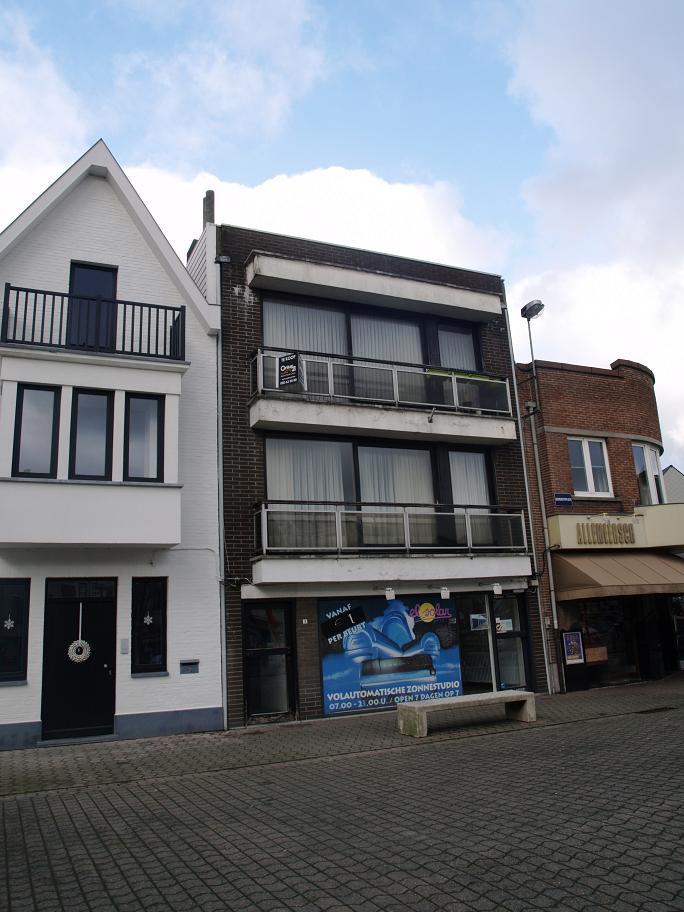 Appartement op het eerste verdiep te Knokke Dorp, gelegen op het Gemeenteplein. Het appartement heeft een mooi open zicht op de Groentemarkt. indeling: een inkomhal met toilet en badkamer, 2 ruime slaapkamers, een gesloten keuken en een lichtrijke woonkamer met een gezellige open haard en uitkijkend op een zonneterras aan de kant van het gemeenteplein. Vooraan is er een balkon aanwezig en achteraan een overdekt terras. Er is ook een ruime kelder beschikbaar.Alle ramen worden vervangen met zwarte aluminium profielen en hoogrendementsglas, op het gelijkvloers, wordt de toegangsdeur op het gemeenteplein breder gemaakt zodat het handelspand toegankelijk wordt gemaakt voor mensen in een rolstoel.