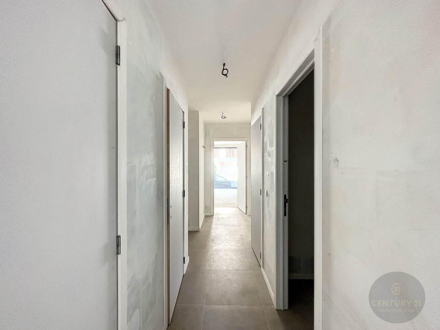 Inkomhal, lichtrijke woonkamer met open keuken (voorzieningen), 2x berging, wasplaats, 2 douchekamers, 2 afzonderlijke toiletten, dressing, 4 slaapkamers en terras achteraan.