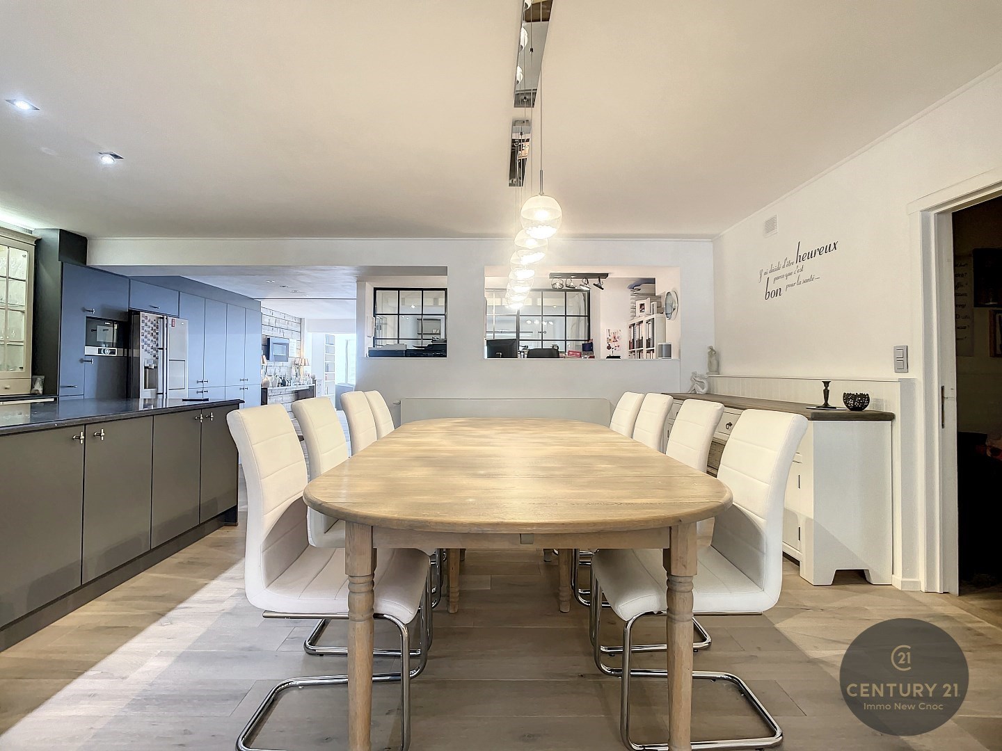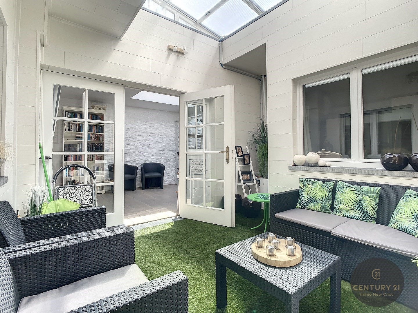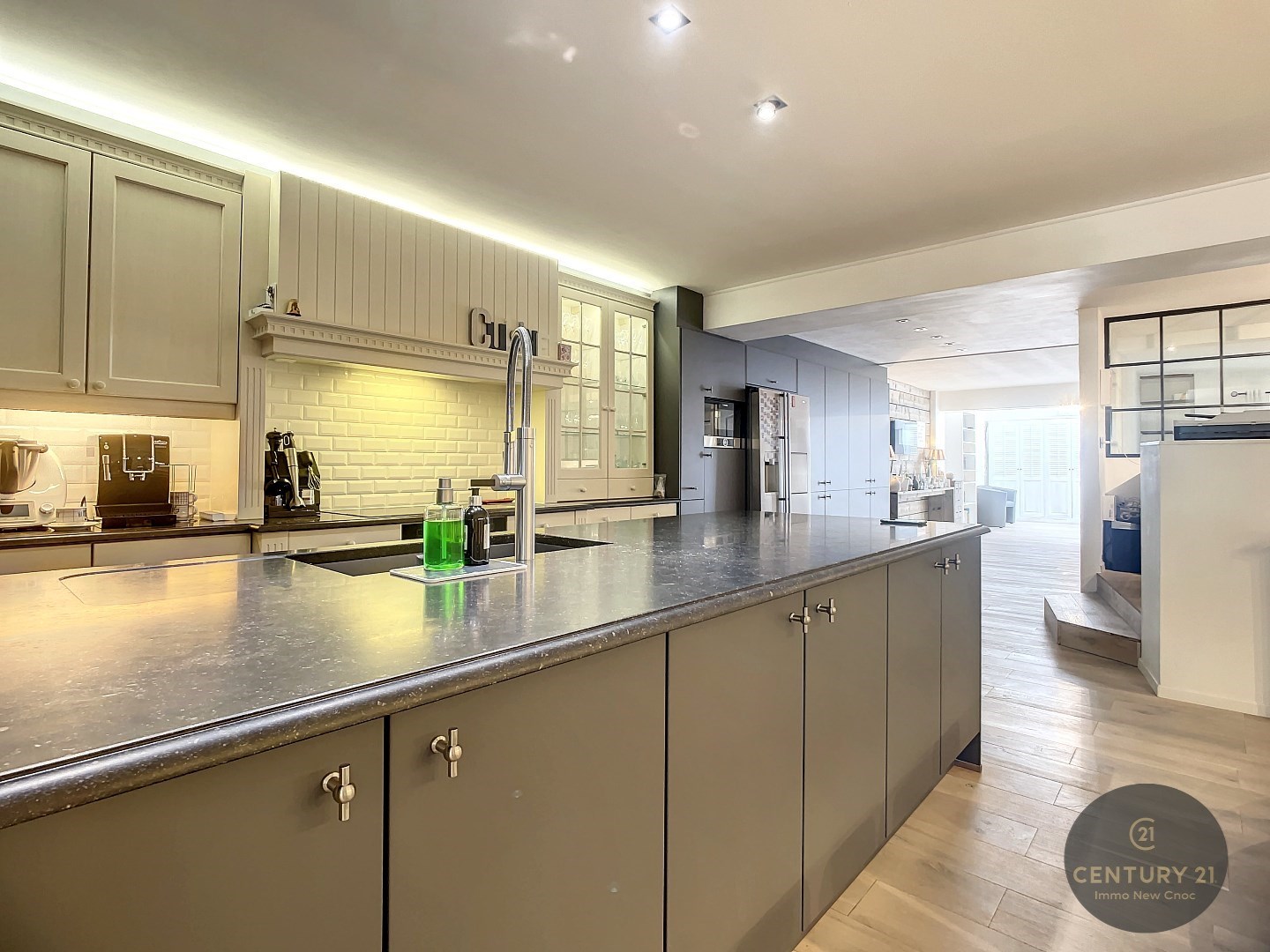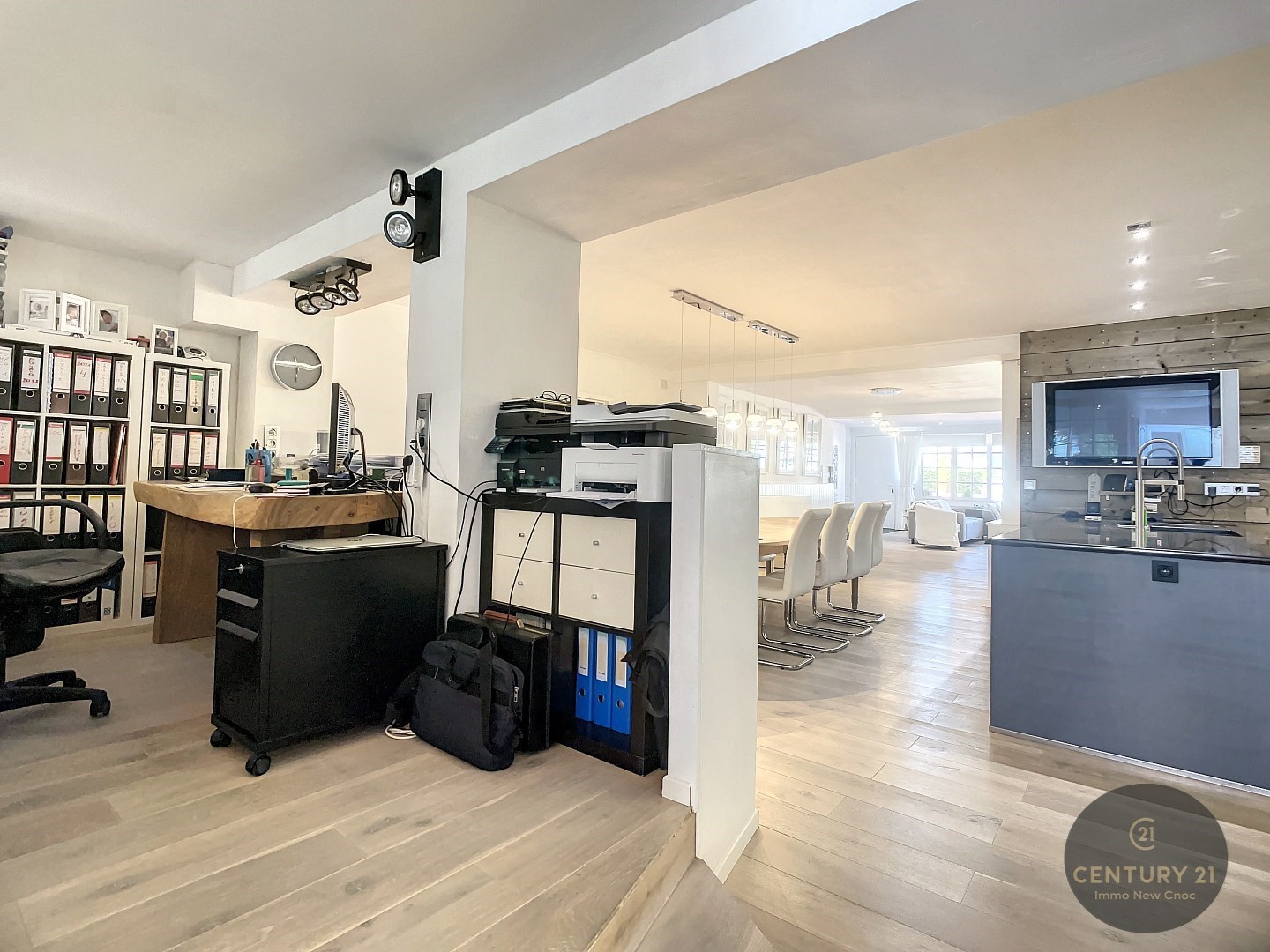 De indeling is als volgt: AFZONDERLIJKE voordeur/inkom met ZEER RUIME woonkamer, eetruimte, open ingerichte keuken, bureelruimte geïntegreerd op verhoog in de leefruimte, een TWEEDE salon/zithoek, 3 slaapkamers, 2 badkamers, tussenhal met vestiaire en toilet, gezellig terras op het gelijkvloers + SUBLIEM dakterras (50m²) te bereiken met vast trap.