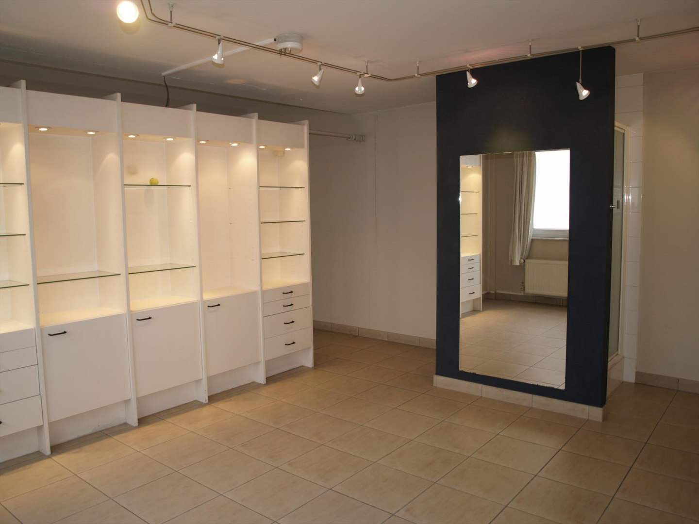 Het handelsgedeelte bevat ongeveer een 94m² open ruimte. Er is een apart toilet + doucheruimte voor het cliënteel. Via een afzonderlijke gang is er toegang tot een bureel/opslagruimte en berging. Mooie grote raampartijen, met veel lichtinval in de handelsruimte.