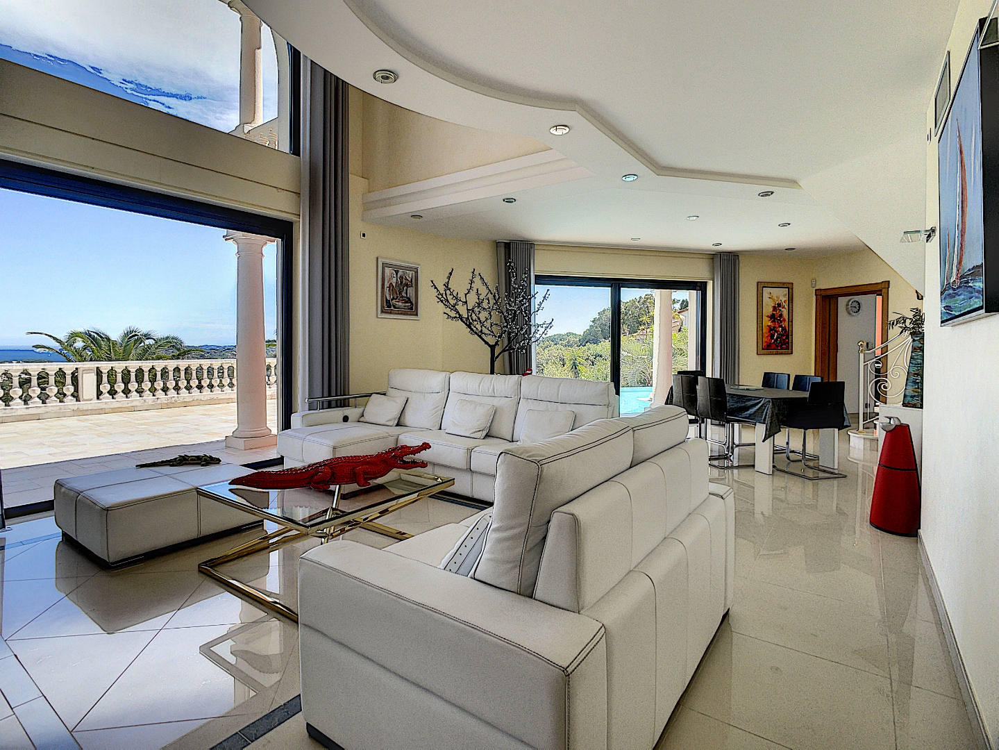Prachtig pand met uitzicht op zee en met uitzicht op de golfbaan van Sainte-Maxime, zwembad op het zuiden, met zeer hoogwaardige materialen, onberispelijke bouwkwaliteit, oogverblindende helderheid ... Met 200m2 leefruimte inclusief een lager niveau van 100 m² converteerbaar volgens uw wens (bioscoopzaal enz.). Geen woorden zullen erin slagen om het te beschrijven, bekijk de video en laat je erdoor verleiden.