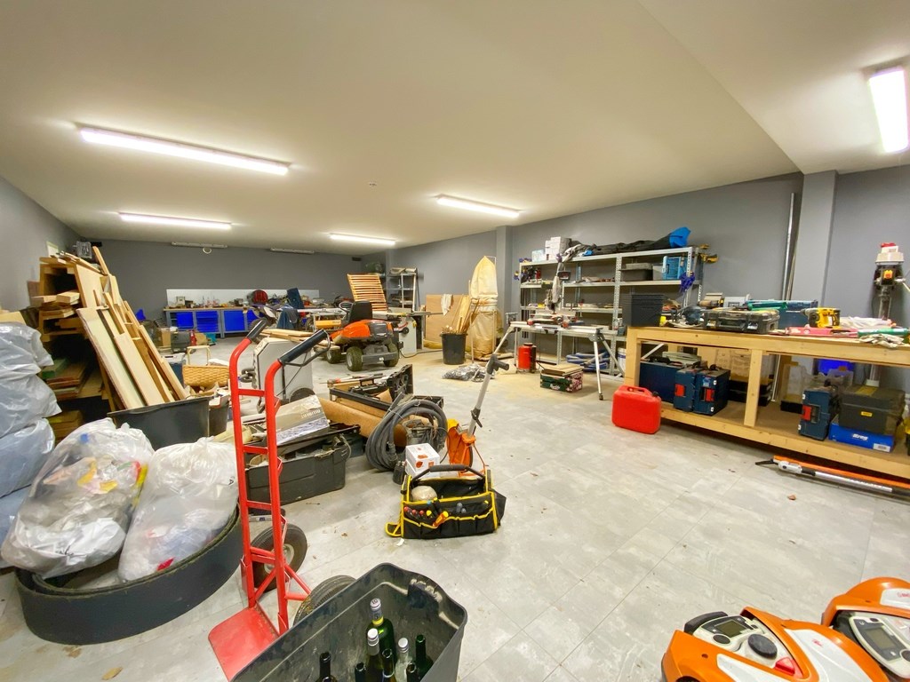 In de kelder met vloerverwarming bevinden zich de technische ruimte/warmtepompen/computer/alarmen/domotica/warmwatertanks/Hifi-rek/in alle comfort bevinden we ons hier in "echte" science-fiction. Garage voor meerdere voertuigen, speelkamer, opslagruimte van +-500m². Tenslotte een grote zolder met daarin een 2e VMC en geïsoleerd met 30 cm dikke isolatie.