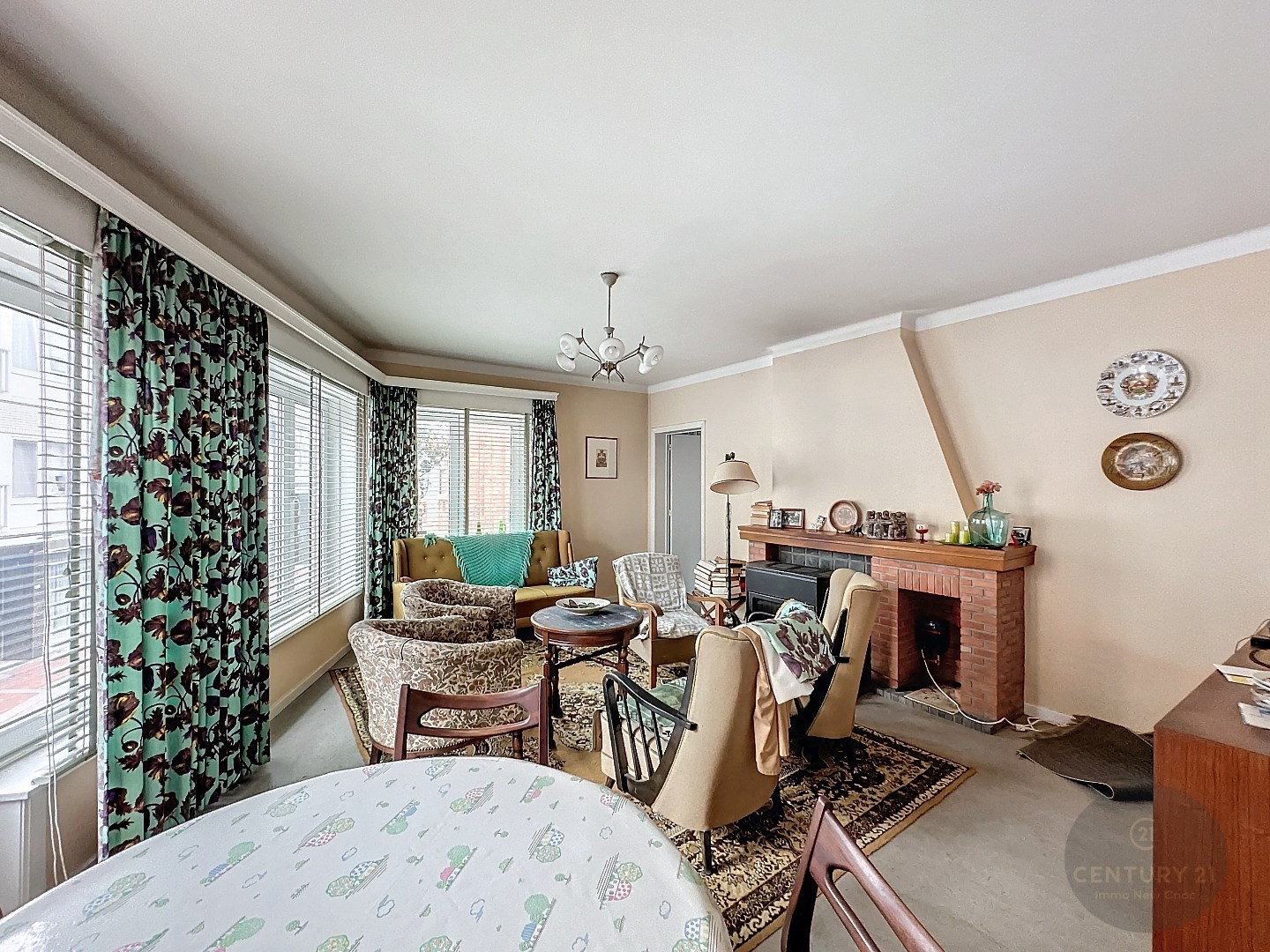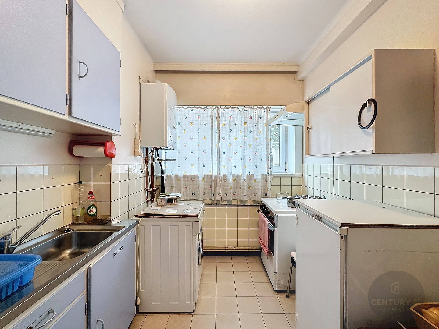 Op het verdiep: ingemaakte bergkast, Inkomhal, lichtrijke woonkamer, afzonderlijke keuken, 3 slaapkamers, badkamer, terras.