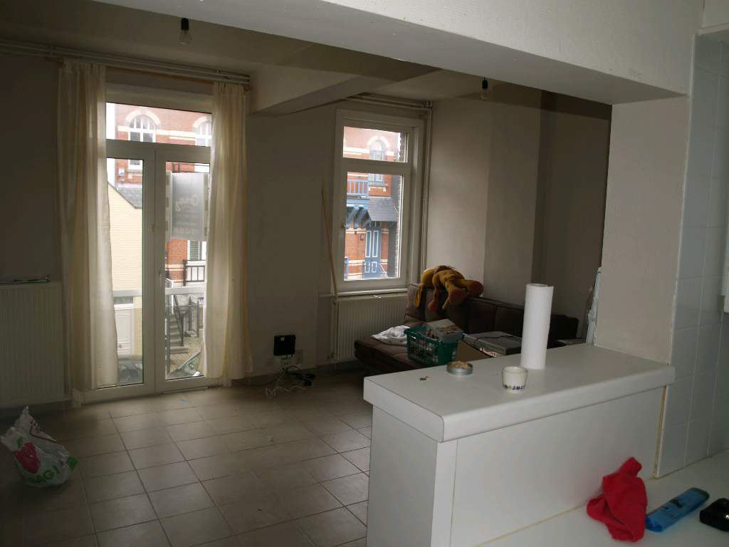 Het eerste verdiep bestaat uit: inkom, traphal, living met open keuken, 2 wc's, badkamer, 2 slaapkamers en 1 zolderkamer.