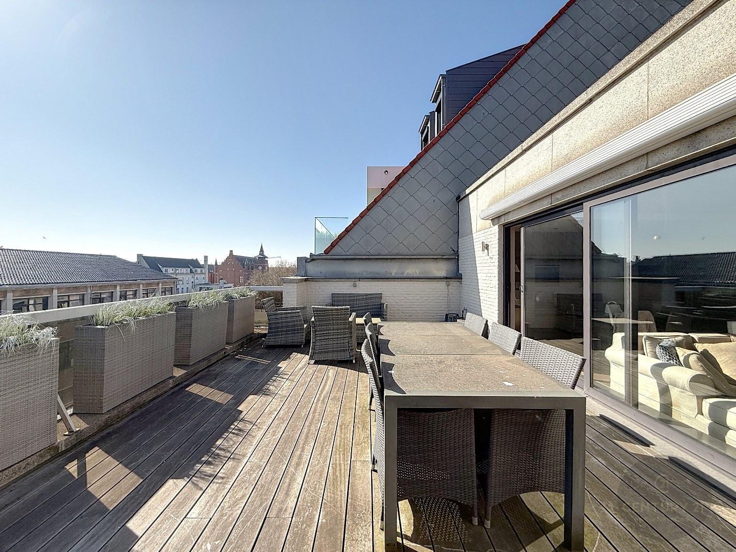 Op het vierde verdiep van de kleinschalige residentie Northwind, is deze penthouse gelegen, in alle rust, met een mooi ver uitzicht. Vlakbij Lippenslaan en vlotte verbinding naar het Zoute.