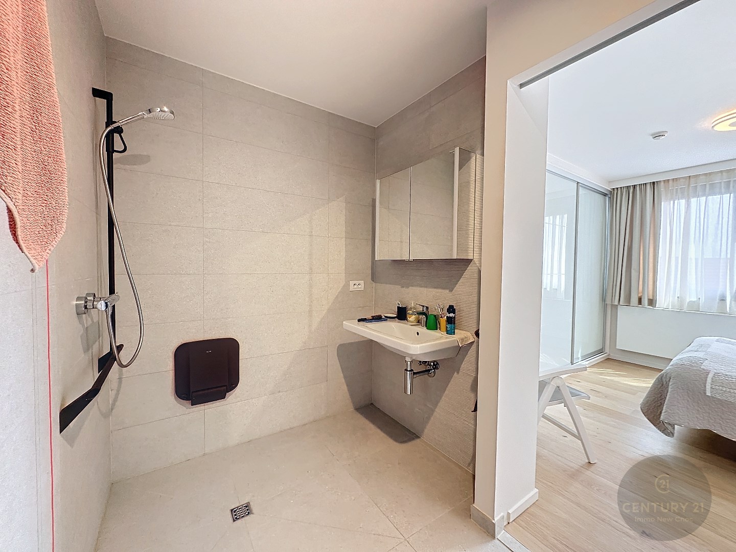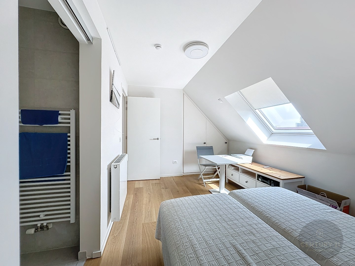 Er zijn 2 volwaardige slaapkamers met ingemaakte kasten en elk zijn badkamer met douche.