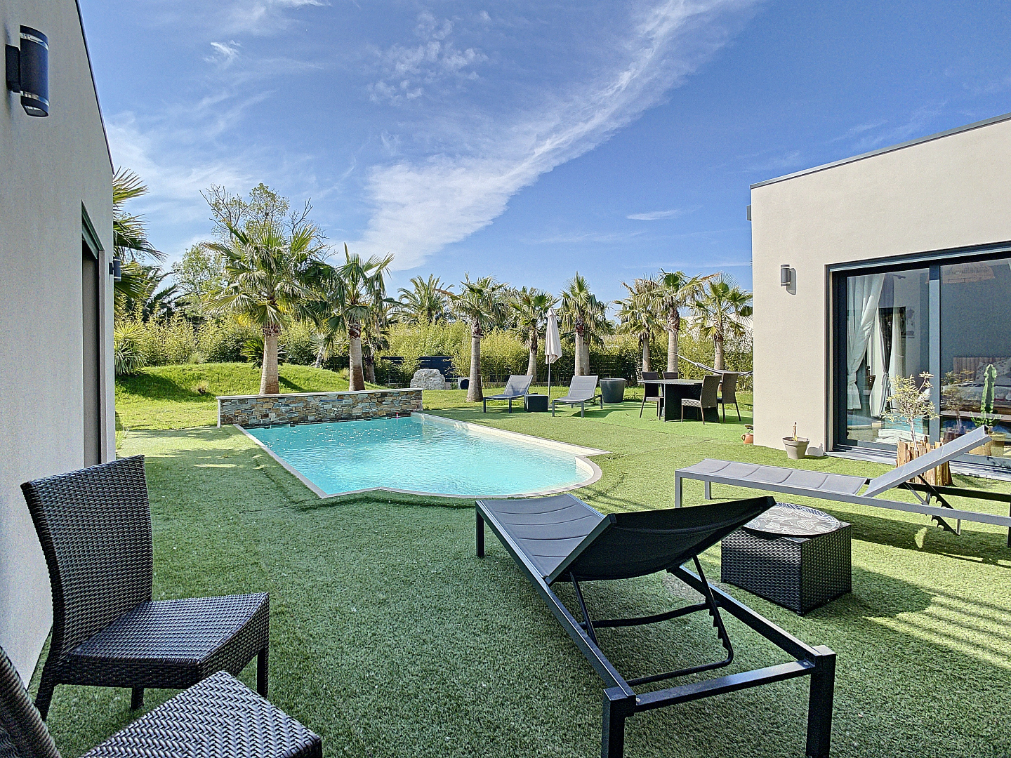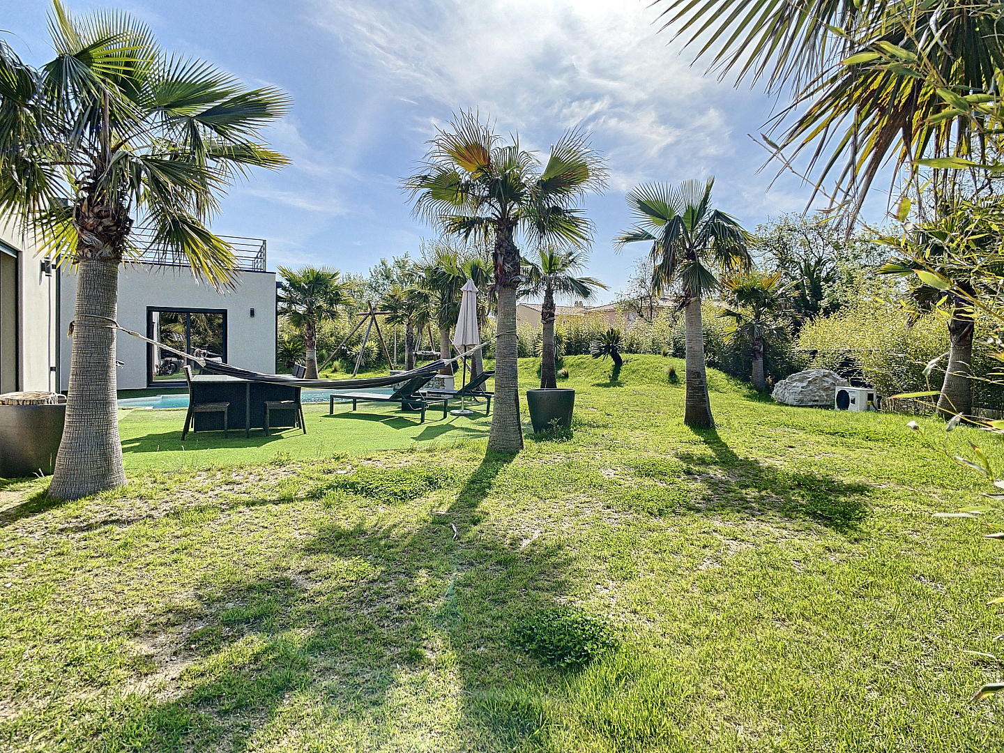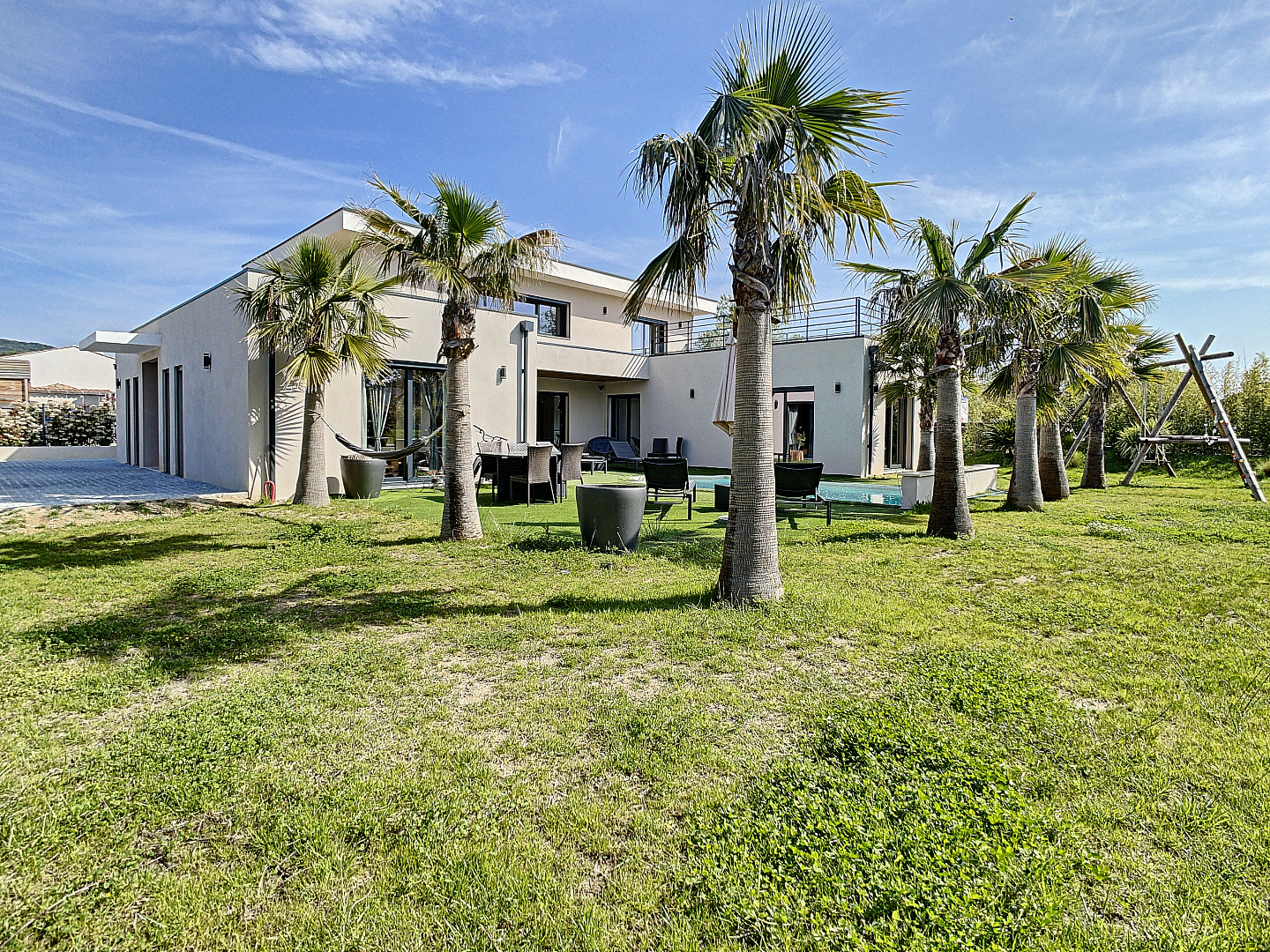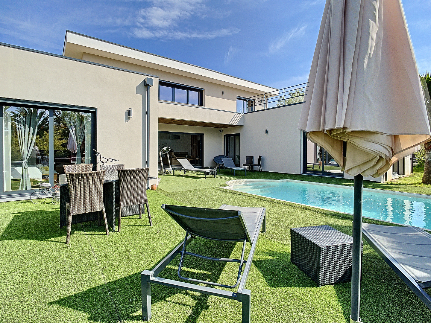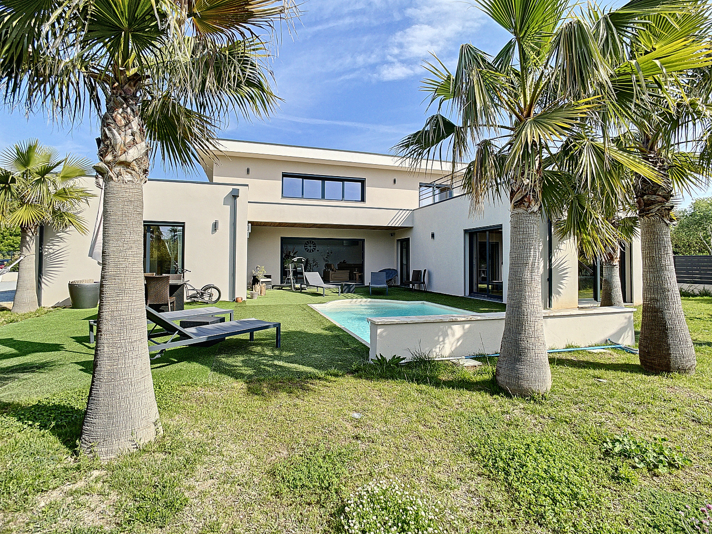 Wie droomt er niet van een modern huis in een van de mooiste dorpen van Frankrijk? Uw vastgoedkantoor presenteert deze prachtige eigentijdse villa van 2018 (10/2018), gelegen in een gesloten en veilige verkaveling. Met een grote woonkamer met een plafondhoogte van 6m, met uitzicht op de buitenruimte. U zult worden verleid door zijn helderheid, zijn hoogwaardige materialen, zijn "uitzicht, zijn aangelegde tuin met zijn verwarmde zwembad.