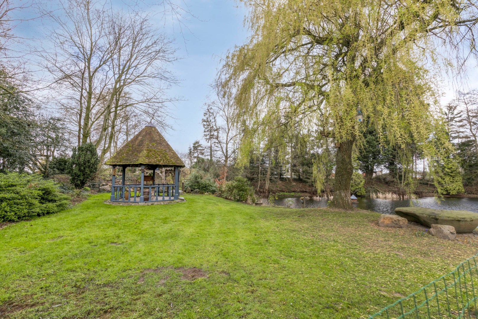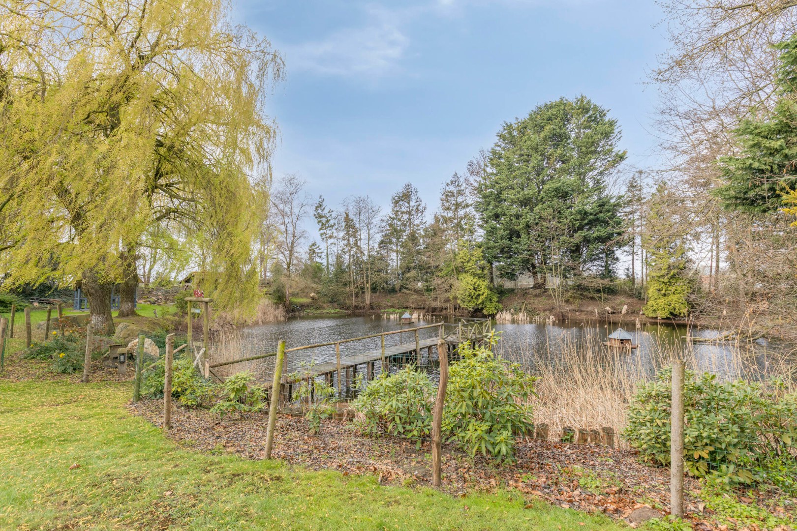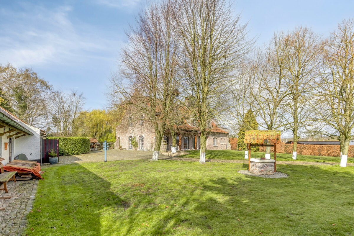 Deze rustieke villa met bijgebouwen ligt ingebed in een prachtig aangelegd domein met volwassen bomen, eigen teeltzones en een idyllische vijver met ponton. Het geheel voelt aan als een privé natuurreservaat, waar elk seizoen zijn eigen charme brengt. Een sfeervolle boomhut, diverse uitnodigende zithoeken en een overdekt terras maken het buitenleven hier ronduit subliem. Dankzij de waterput en de doordachte inrichting is dit een plek waar authenticiteit en functionaliteit harmonieus samenkomen.