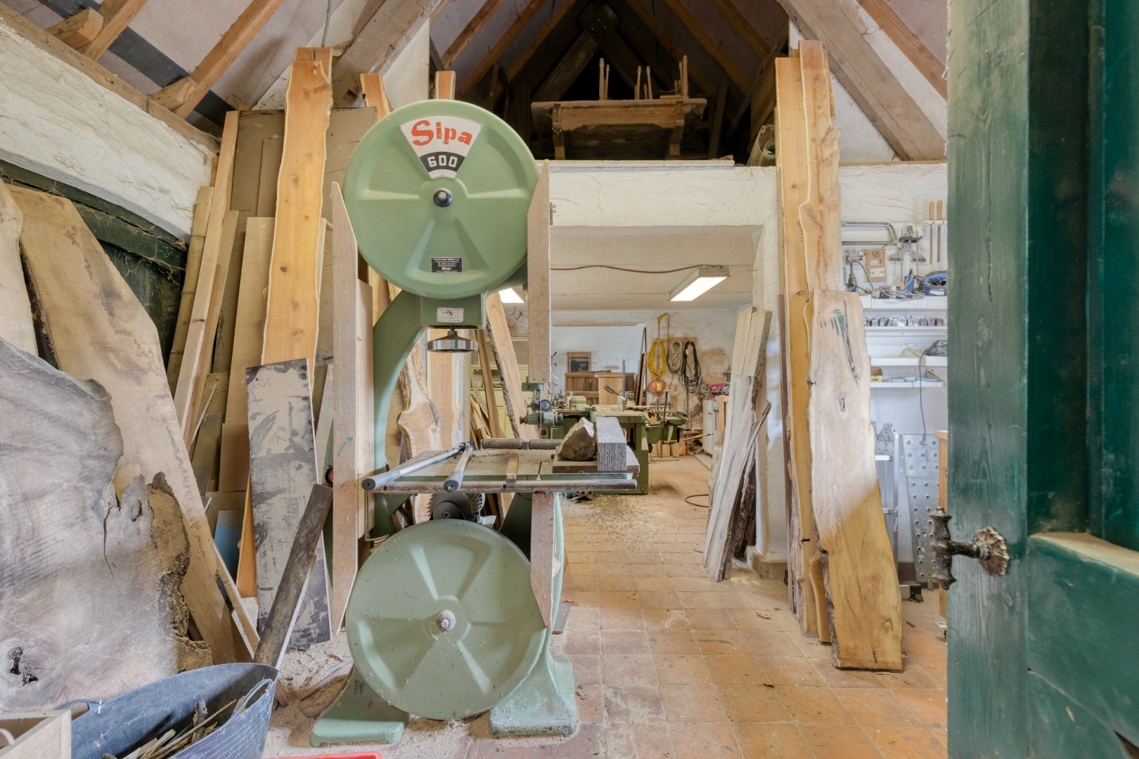 Daarnaast is er een ruim bijgebouw ingericht als werkplaats met garage, ideaal voor zelfstandigen, hobbyisten of het veilig stallen van voertuigen en materiaal.