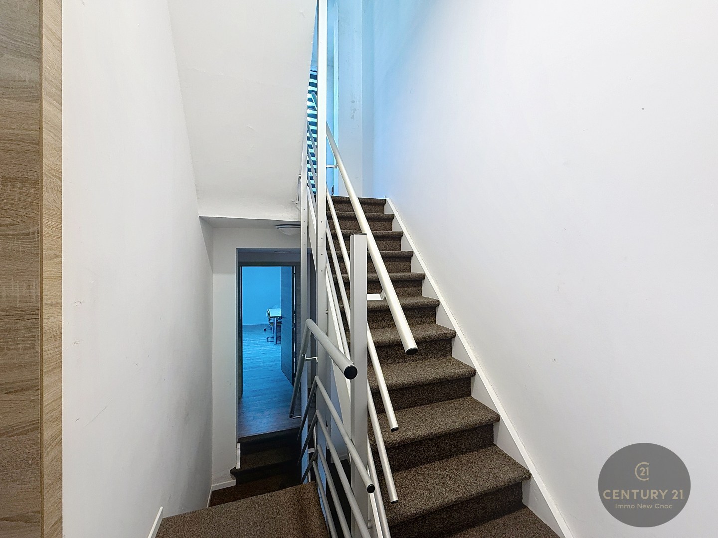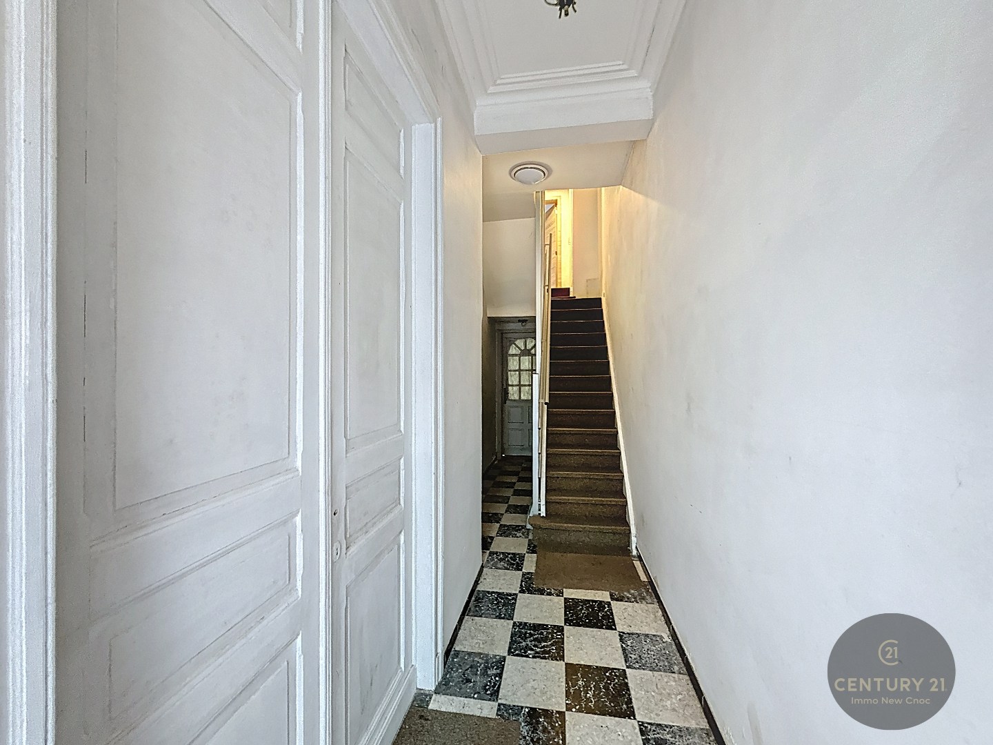 Gelijkvloers: Inkomhal met trap, toegang tot de garage en kelder