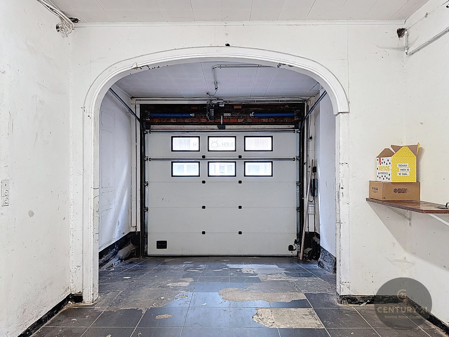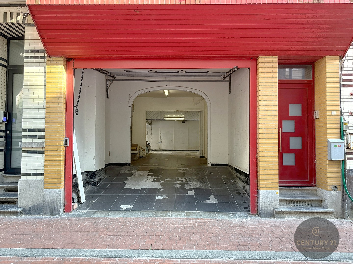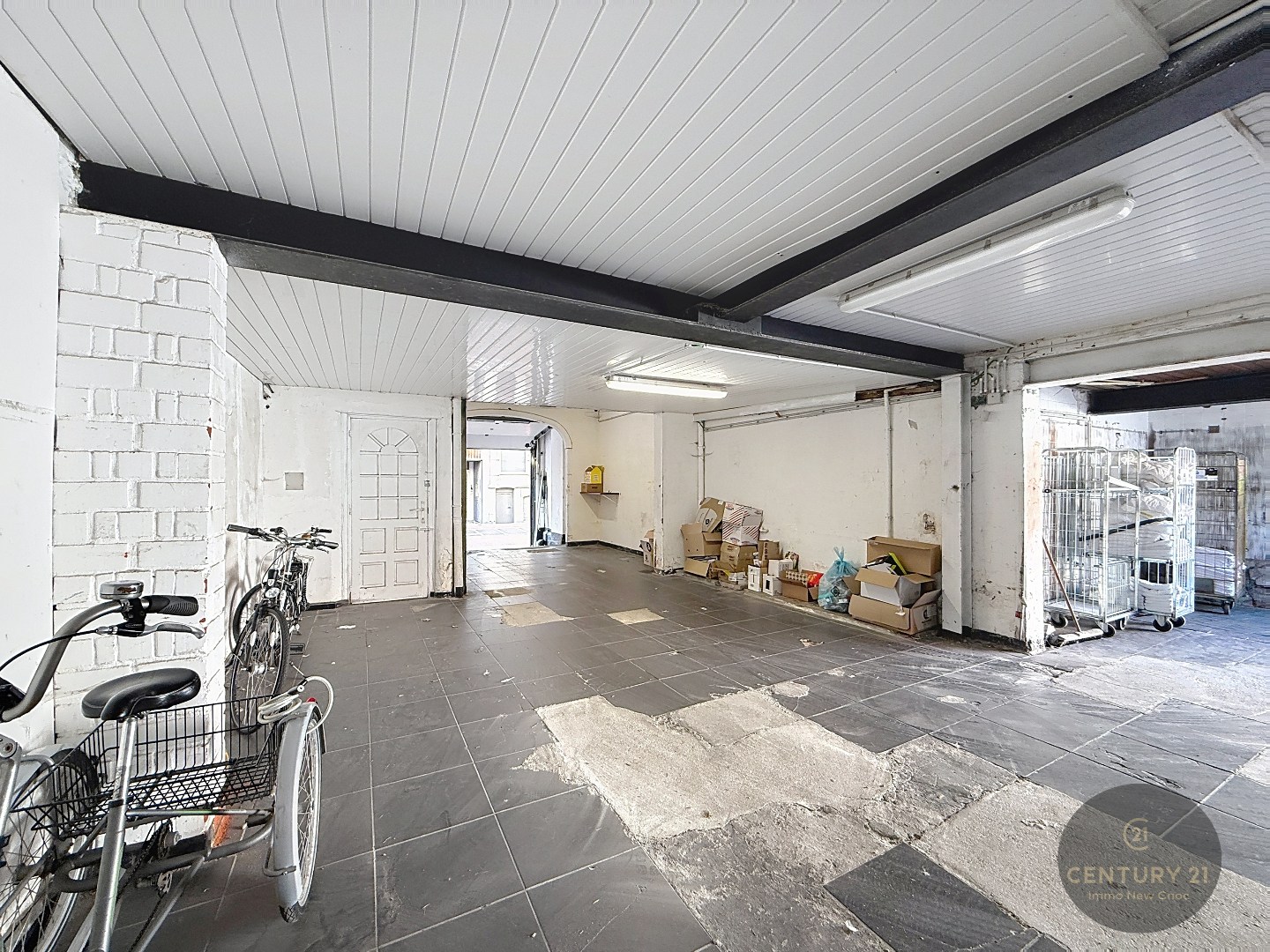 De garage op het gelijkvloers verleent recht van doorgang aan het achterliggend kleinschalig hotel. De garagepoort is een officiële inrit en toegang tot het hotel. Hierdoor mag de garage uitsluitend gebruikt worden voor het stallen van fietsen – het plaatsen van een wagen is niet toegestaan.