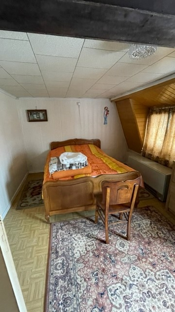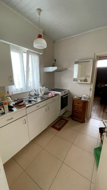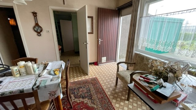 Voordeur met toegang woonkamer, afzonderlijke keuken, eetplaats, badkamer, berging/wasplaats, extra berging met trap (luik) naar verdiep. Via de keuken is er ook een trap naar het verdiep met 3 kleinere slaapkamers.