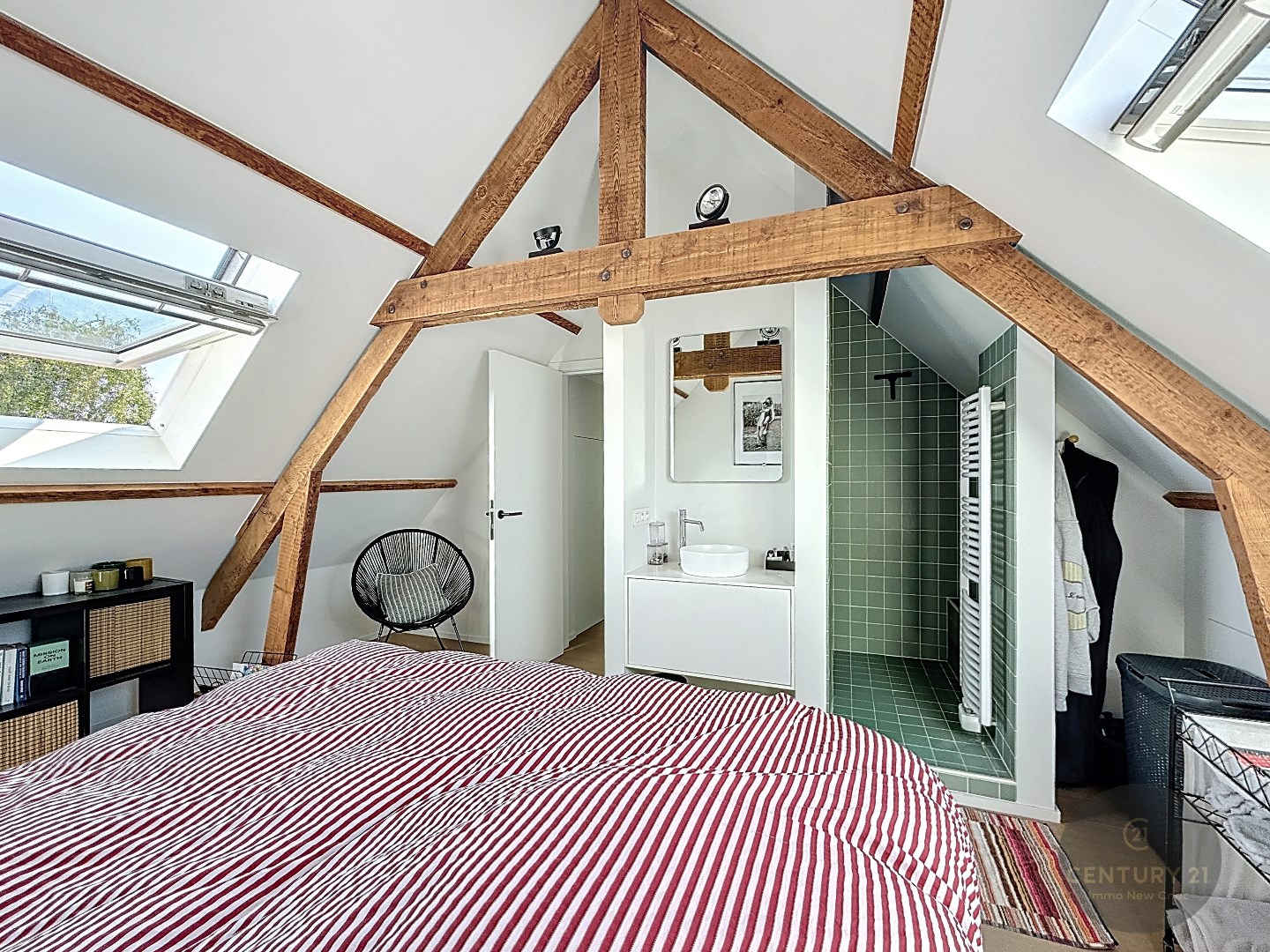 Op het eerste verdiep zijn 2 slaapkamers, een badkamer met inloopdouche en een afzonderlijk toilet. Op het tweede verdiep is 1 grote slaapkamer met open douchekamer.