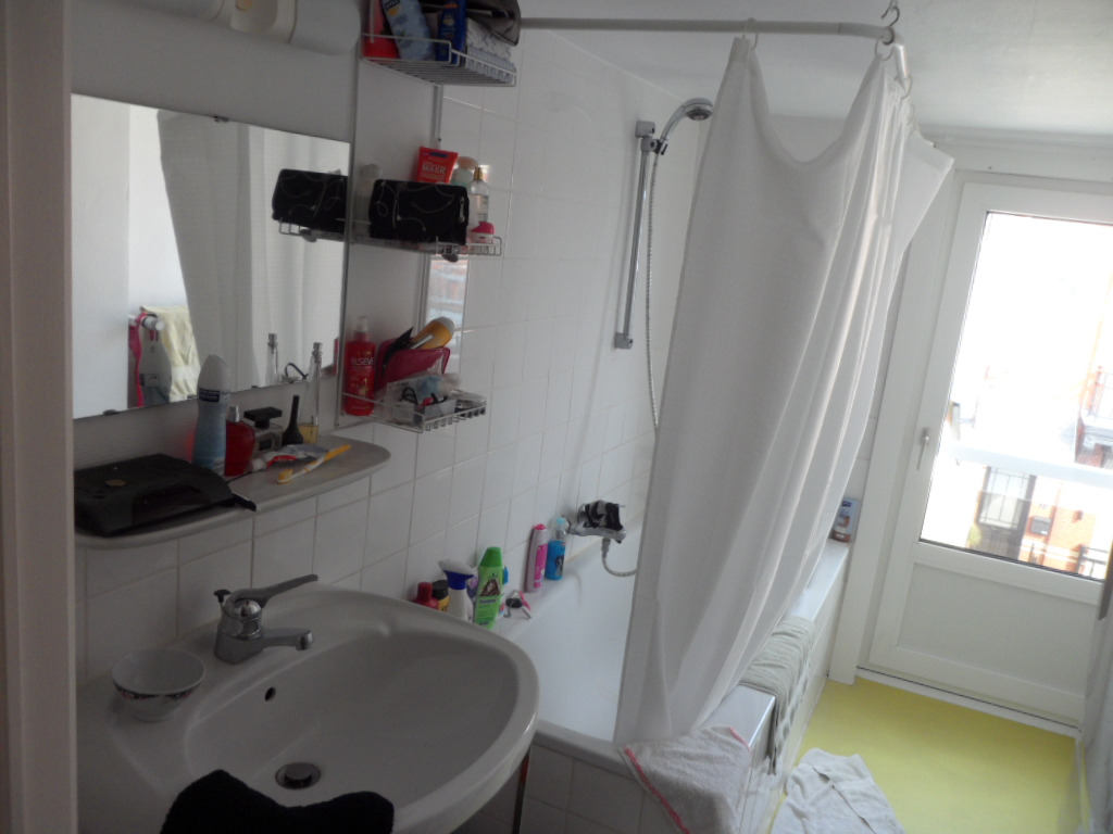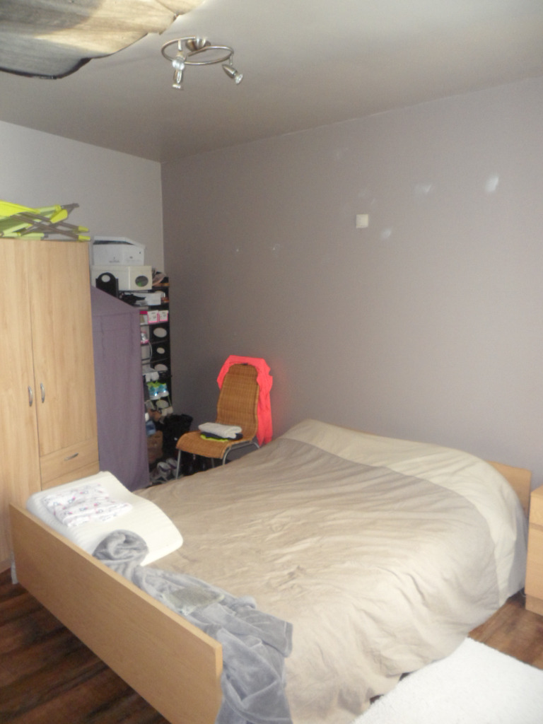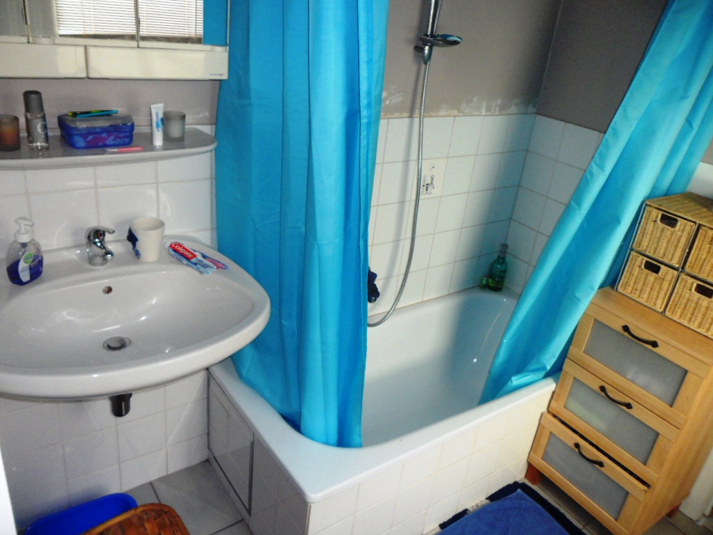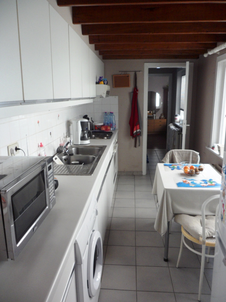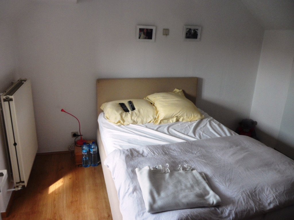 Het eerste verdiep bestaat uit: inkom, traphal, living met open keuken, 2 wc's, badkamer, 2 slaapkamers en 1 zolderkamer.