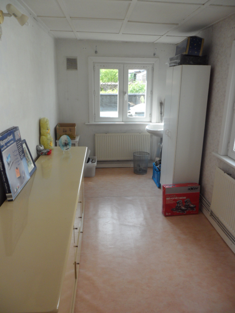 De gelijkvloers bestaat uit: gang, living, berging, wc, keuken, badkamer, koer, slaapkamer, traphal en tweede slaapkamer.