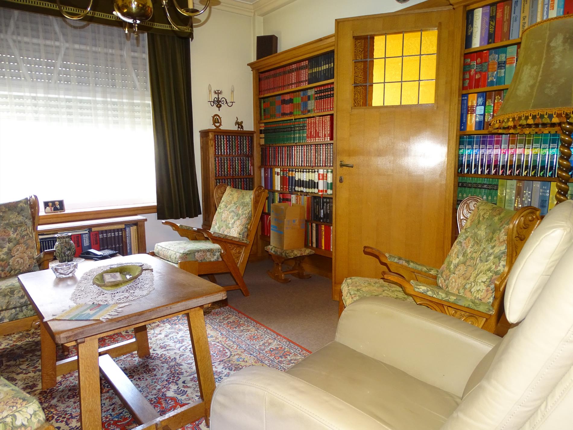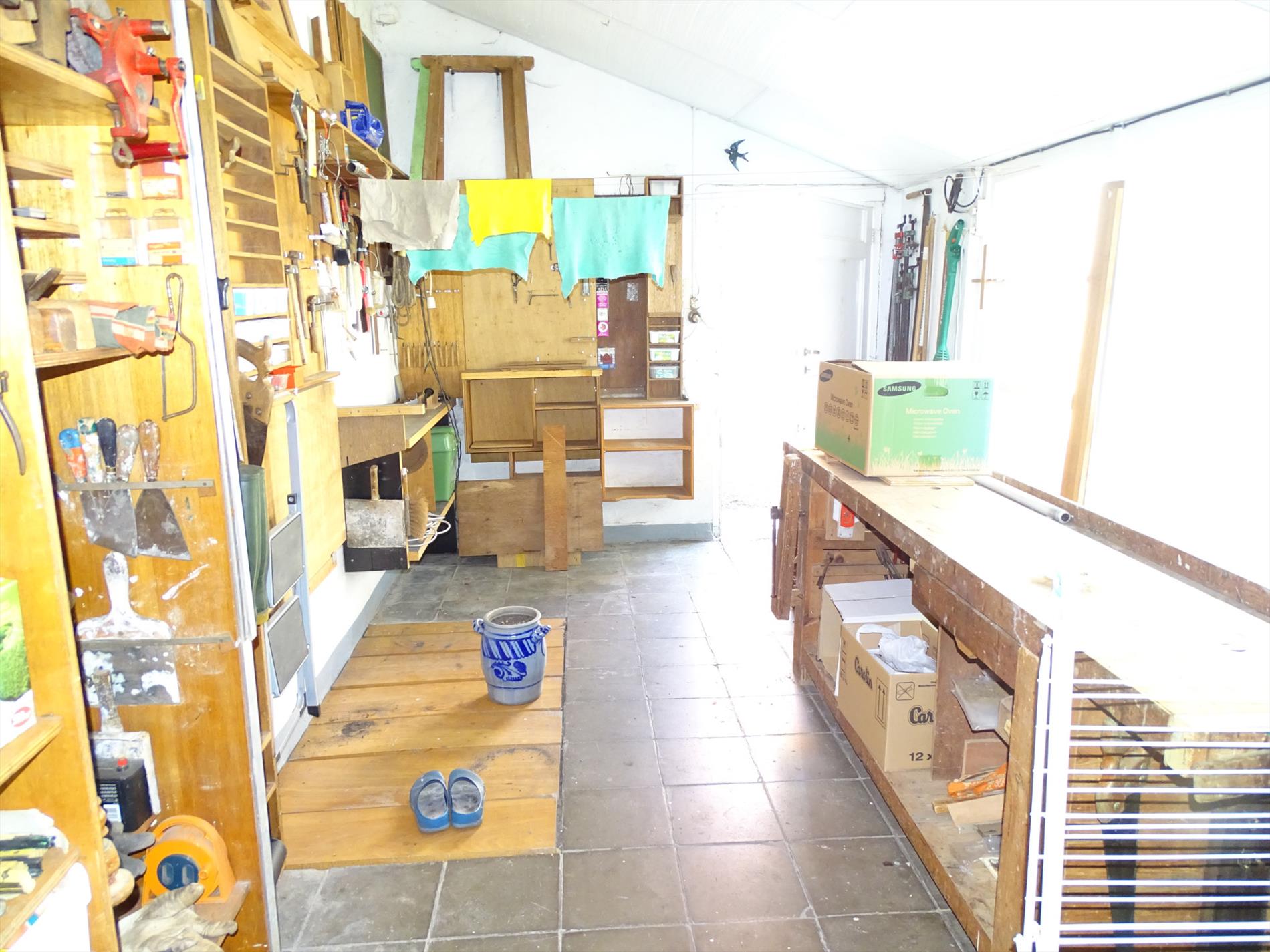 Indeling: inkomhall, living met aansluitende keuken met toegang tot de tuin, kelder, badkamer, toilet, werkplaats, afzonderlijke garage met aparte ingang in zijstraat. Op het eerste verdiep: 3 ruime slaapkamers. Er is tevens ook een ruime zolder die kan ingericht worden als 4de slaapkamer.