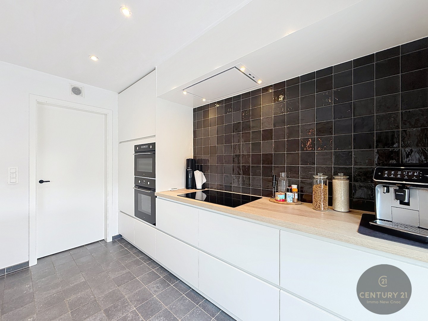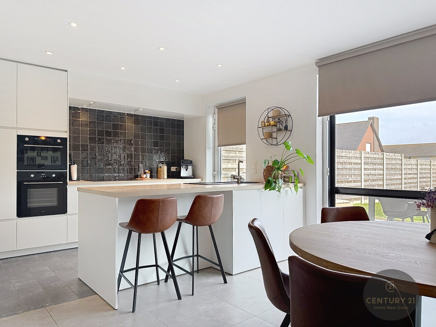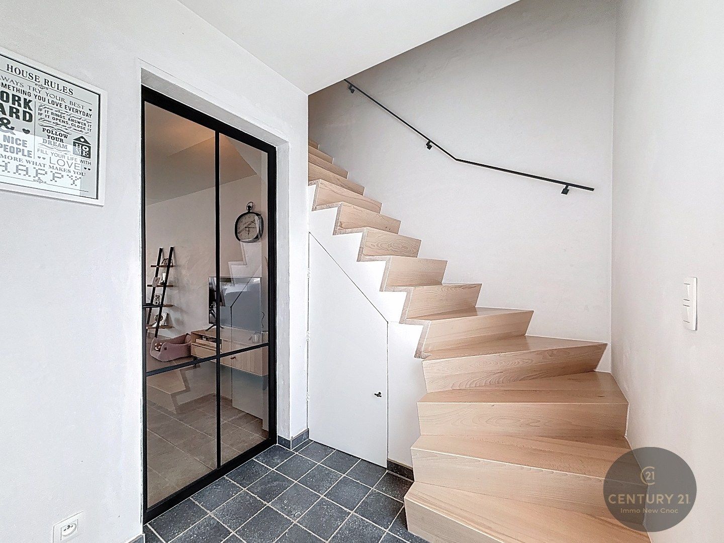 Bij binnenkomst word je verwelkomd in de inkomhal met gastentoilet en een stijlvolle trap en smeedijzeren deur. De lichtrijke woonkamer met grote ramen biedt een prachtig zicht op de tuin, en sluit naadloos aan op de moderne ingerichte open keuken met eiland en zitplaatsen aan het werkblad- ideaal om samen te genieten. Aansluitend is er een berging/wasplaats en een inpandige garage. In de garage staan alle nutsvoorzieningen, zonnepaneel omvormer, hoog rendementsketel,...