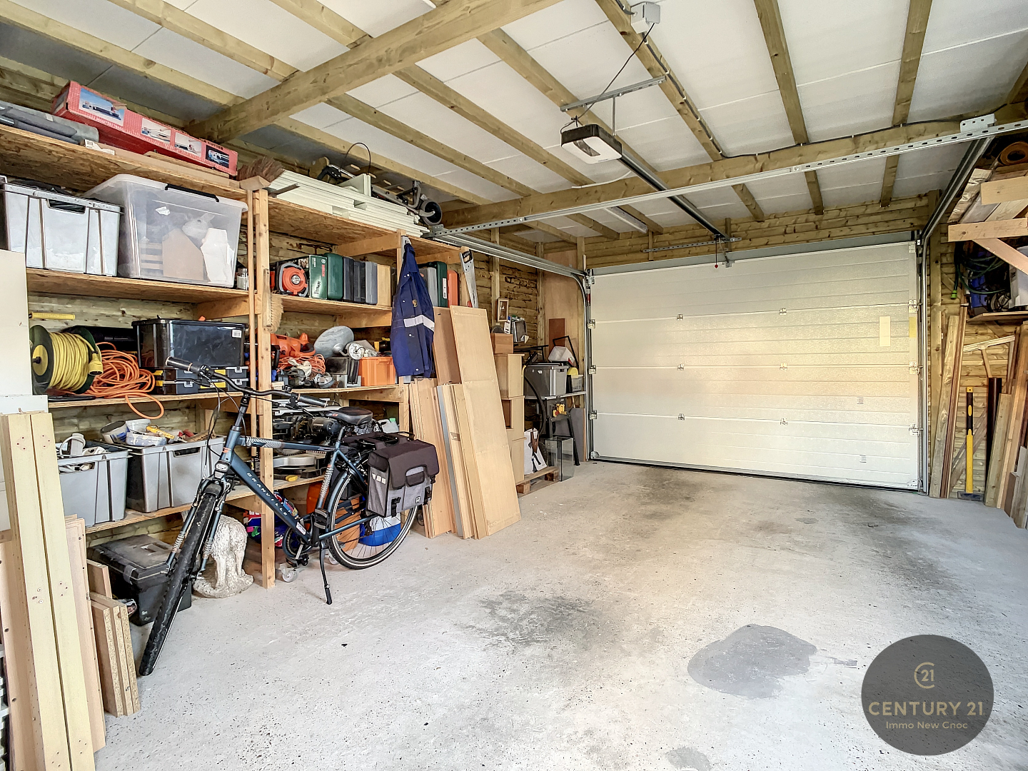 Inkomhal met trap, woonkamer, hal met toilet en badkamer, DROGE ruime kelder, keuken, eetplaats met toegang tot tuin, in de tuin zijn diverse bergingen en een serre, een ruime garage en een voortuin met vijver.
